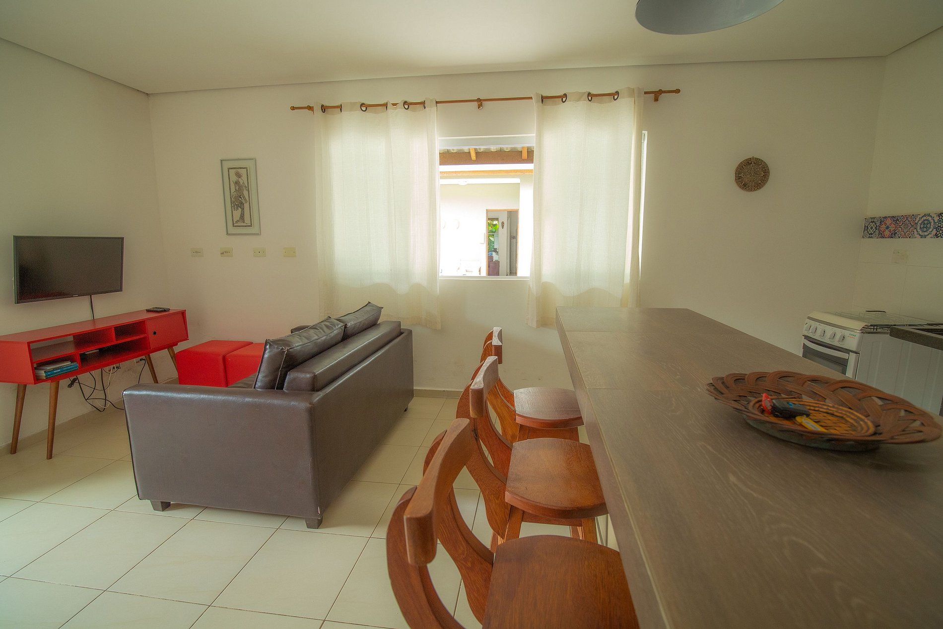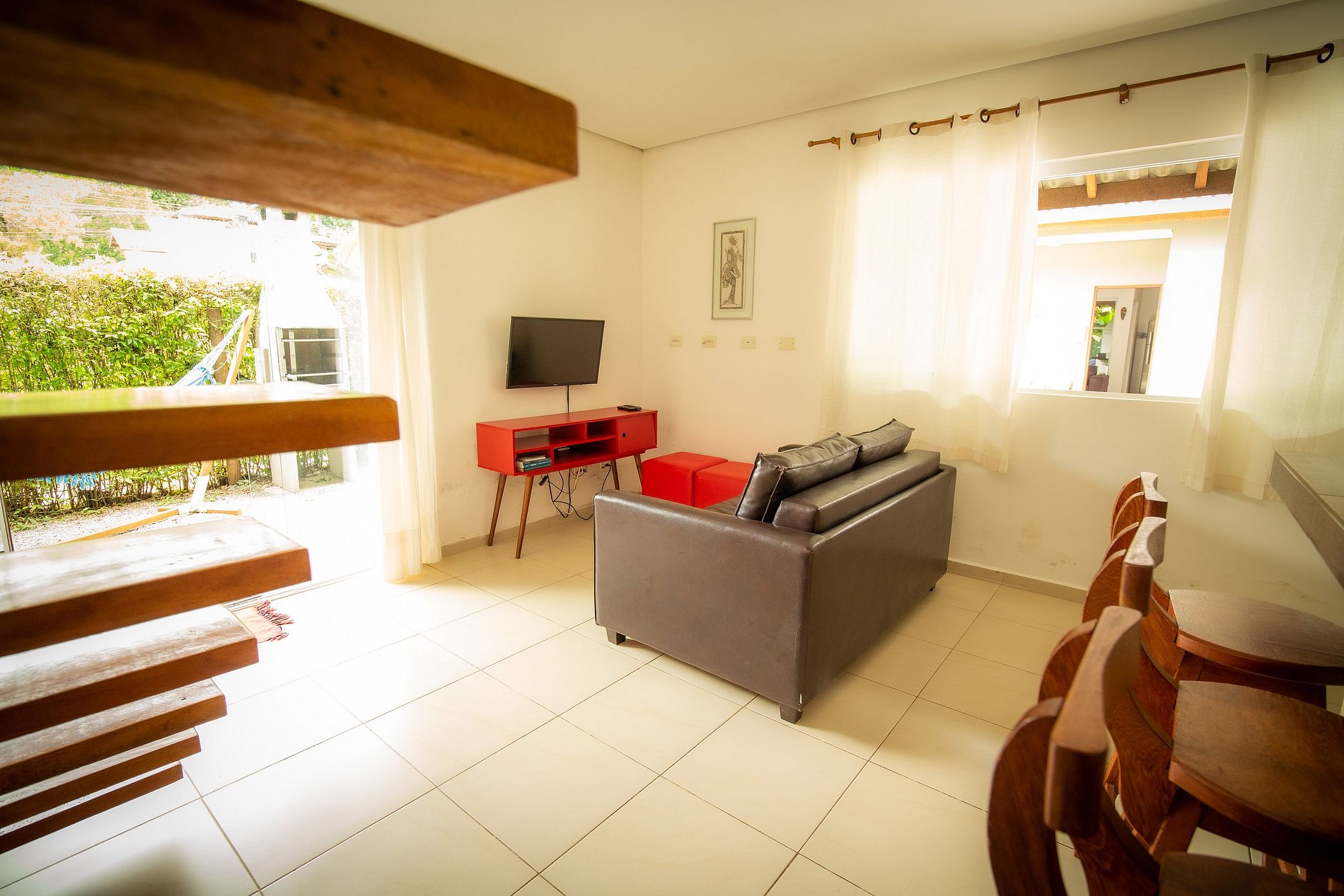 Aqui é pet friendly de verdade, seu pet é bem-vindo e vai adorar o quintal seguro e os passeios pelas ruas de Maresias.