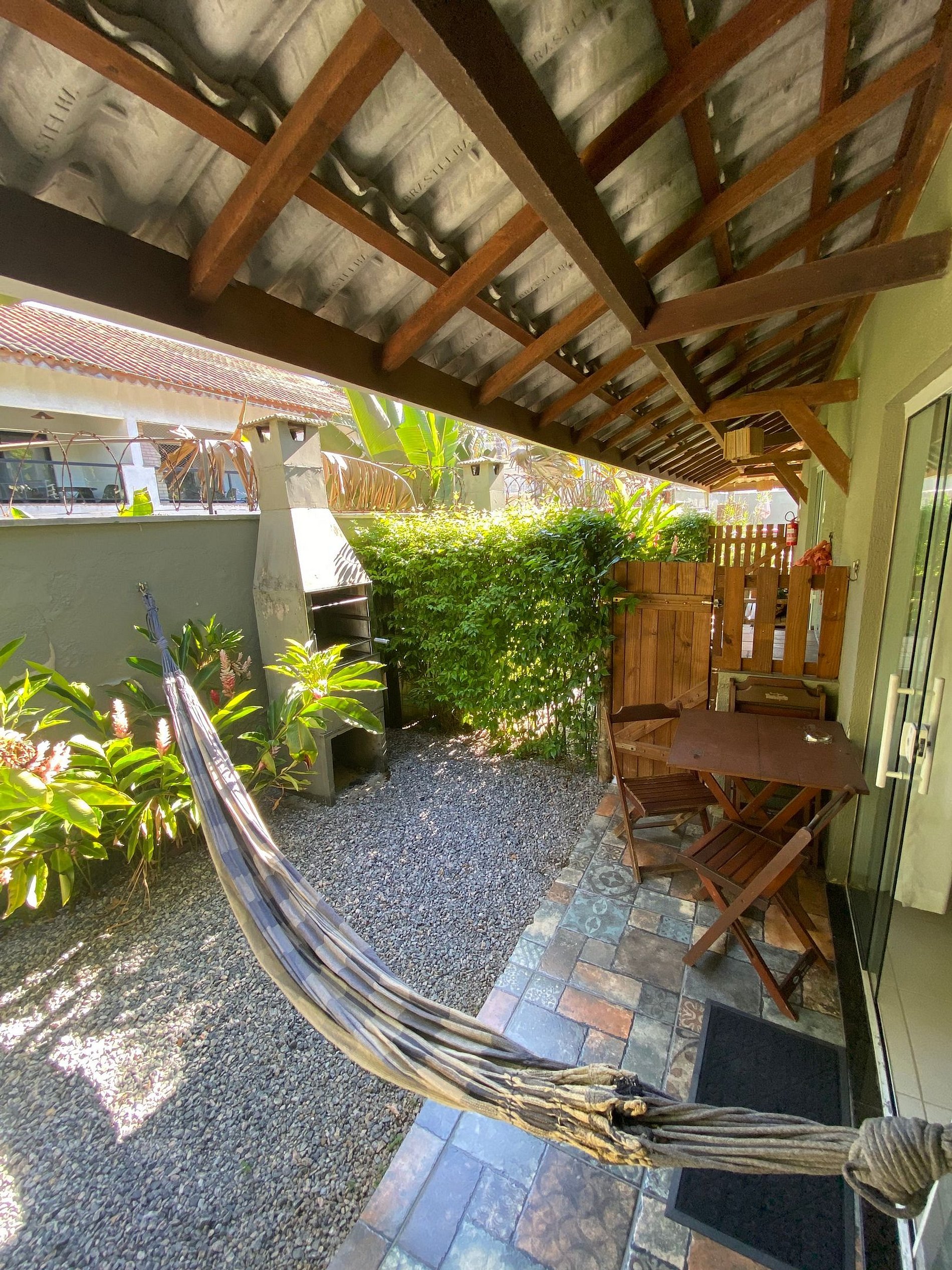 A casa e a churrasqueira são privativas.